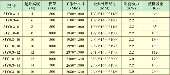 四輪液壓升降平臺技術(shù)參數(shù)